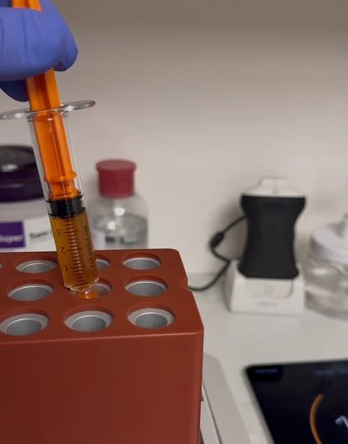 The procedure is quick and comfortable. We’ll draw a small amount of blood, process it in a centrifuge, and prepare the PRF gel. The gel is then carefully injected into targeted areas such as under the eyes, cheeks, or smile lines. Most clients return to normal activities right after their appointment but will look overfilled or slightly swollen for several days. Bruising can also occur.